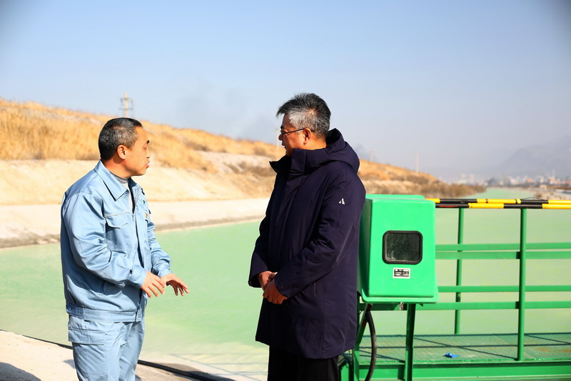 針對鈣液原料水環(huán)保參數(shù)超標(biāo)等問題,董事長王德志一行現(xiàn)場勘察堿業(yè)公司氨堿上清液,堿業(yè)公司渣場管理處主任盧全才等領(lǐng)導(dǎo)詳細(xì)介紹近期堿廠的環(huán)保整改措施,首先是進一步做好酸堿平衡,確保原料水PH值堿度指標(biāo)不超標(biāo),其次是降低氨氮濃度,確保不超標(biāo)。在此基礎(chǔ)上,堿業(yè)公司在氨堿上清液送水通道安裝水質(zhì)在線監(jiān)測設(shè)備,確保及時發(fā)現(xiàn)異常,做到第一時間處置。