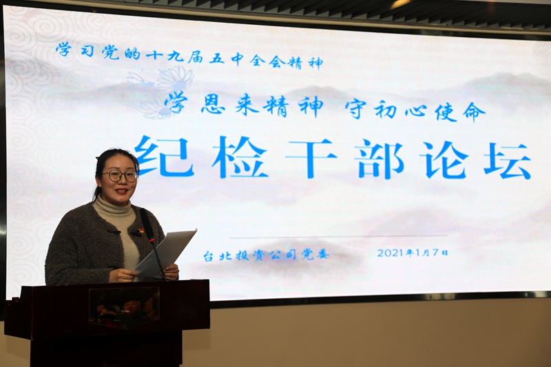 “感受偉人風(fēng)范,踐行初心使命……”從臺北投資公司十樓會議室里傳來鏗鏘有力的演講聲。為深入推進(jìn)“學(xué)恩來精神、守初心使命”專題教育活動,鍛造忠誠干凈擔(dān)當(dāng)?shù)?/span>紀(jì)檢干部隊(duì)伍,1月7日下午,公司舉辦紀(jì)檢干部專題大講堂。公司領(lǐng)導(dǎo)班子成員,各單位、部門中層副職以上管理人員參加了活動。