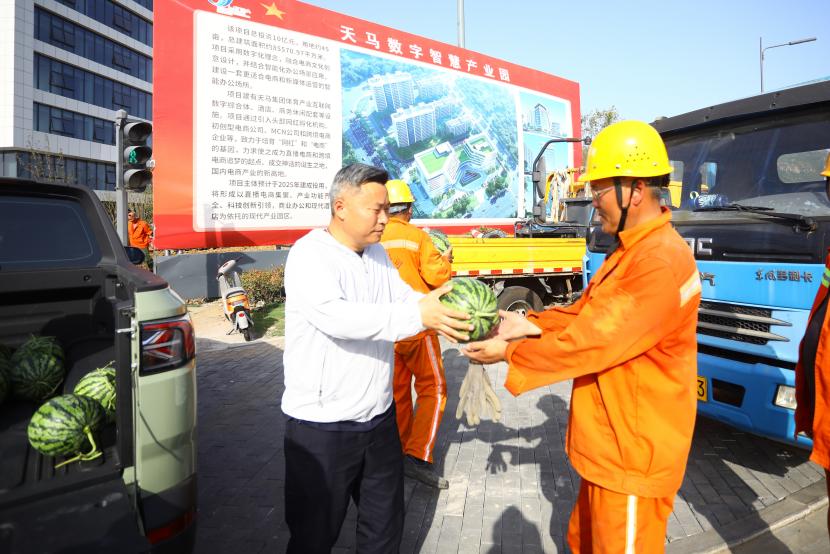 “施工現(xiàn)場送西瓜啦!”隨著夏日高溫持續(xù)攀升,為全力做好高溫天氣下職工防暑降溫工作,切實保障職工安全健康權(quán)益,自5月20日起,臺北投資公司工會精心策劃并開展“夏送清涼”主題活動。公司工會深入工程施工現(xiàn)場,將甘甜多汁的西瓜送到堅守在高溫崗位的職工手中,為他們送去陣陣清涼,這一暖心舉措收獲職工們紛紛點贊。
