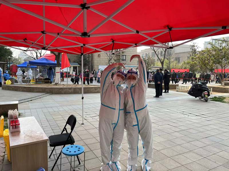 9:00 ?所有人員就位,我也開始了我的“大白”體驗(yàn)課,工作就是核對(duì)身份證信息與二維碼一致,進(jìn)行拍照采樣。身穿防護(hù)服,站到崗位上,面前就是群眾,心中滿腔責(zé)任感,使命感。