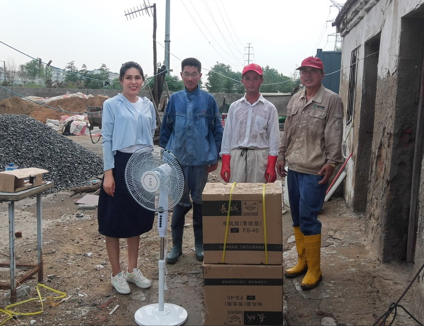 近期,海州灣工會協同公司一起深入班組開展“安全生產百日攻堅大行動”,認真排查生產作業(yè)場所及職工值班室安全隱患。在排查過程中,發(fā)現值班室的吊扇十分陳舊,運轉時有晃動的現象,存在風葉脫落的危險,且風力微弱,達不到良好的降溫效果。工會現場拿出解決方案,決定采購一批落地扇送入班組,為職工送去一絲清涼。