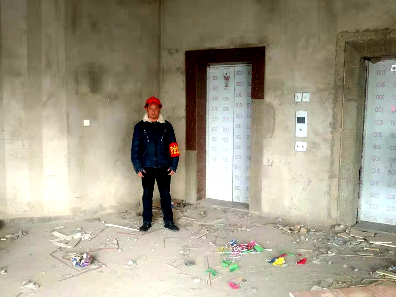 現(xiàn)場多次有人提出邀請王愛軍等兩位同志吃飯喝酒,都被他們嚴詞拒絕。帶著一塊面包,一根火腿腸,他倆像釘子一樣釘在電梯廳。“扯著雞毛當令箭”的風(fēng)言冷語不停傳來,他們執(zhí)行任務(wù)的決心不動搖,輪流換班,也不讓電梯違規(guī)使用。保障二號樓安全施工,他們就是硬漢守門員。