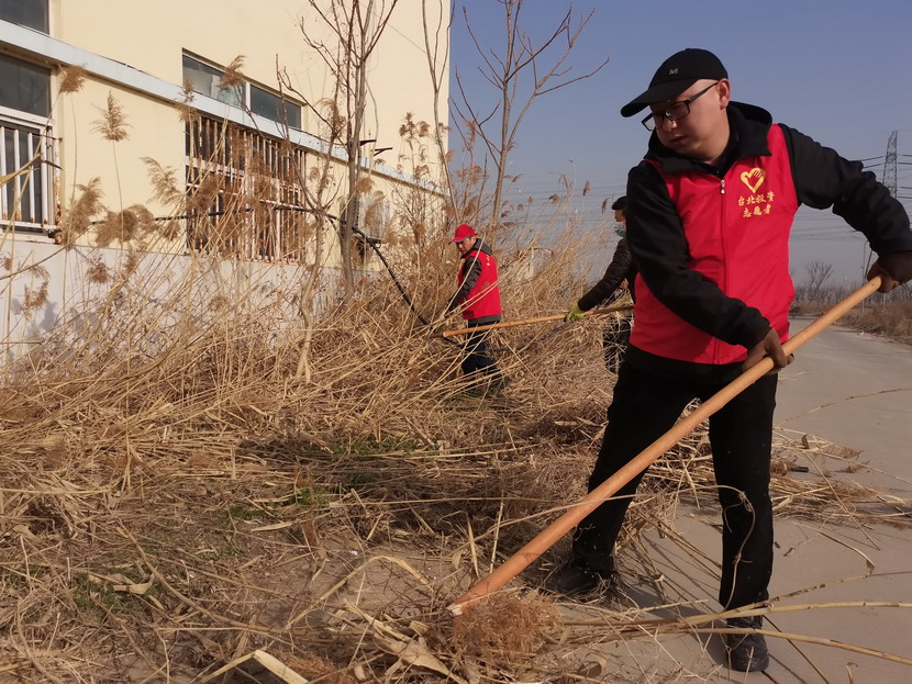 ? ? ? ? 3月4日,按照活動(dòng)統(tǒng)一安排,志愿者們紛紛抵達(dá)各自點(diǎn)位開展統(tǒng)一活動(dòng),本次活動(dòng)主要是清理公司主次干道兩邊的雜草以及各種彩色垃圾?;顒?dòng)中,身著紅色馬甲志愿者分工協(xié)作,首先由男同志們對(duì)周邊的蘆葦、鹽薅進(jìn)行地毯式收割,大家揮動(dòng)著鐮刀、鐵锨,干的十分起勁,顧不得漫天飛舞的蘆葦花和灰塵。女同志們負(fù)責(zé)用釘耙將割下的雜草以及死角里的彩色垃圾,摟到一起便于集中清理。在勞動(dòng)過(guò)程中大家互相幫助、互相合作,很好的展現(xiàn)了集體的團(tuán)結(jié)協(xié)作精神,有的同志手不小心被木板上的釘子劃傷了,擦干凈血接著干。經(jīng)過(guò)2個(gè)小時(shí)的清理,主次干道煥然一新。