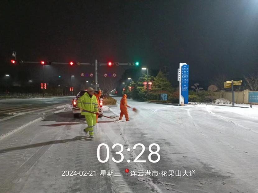 ? ? 21日晚6點,益豐園林分公司接到保障活動線路任務(wù),孫杰又帶領(lǐng)黨員突擊隊立即行動,身披“橘”甲,不畏嚴(yán)寒,為了除雪保通這個目標(biāo),絲毫不敢懈怠。他們沿黃海大道、躍湖路、銀珠路三條路一邊撒布融雪劑,一邊用鏟車及時清理積雪和暗冰,他們與風(fēng)雪搏斗,一直在路上。直至22日早晨10點連續(xù)作業(yè)28小時,等活動結(jié)束才全員休息。