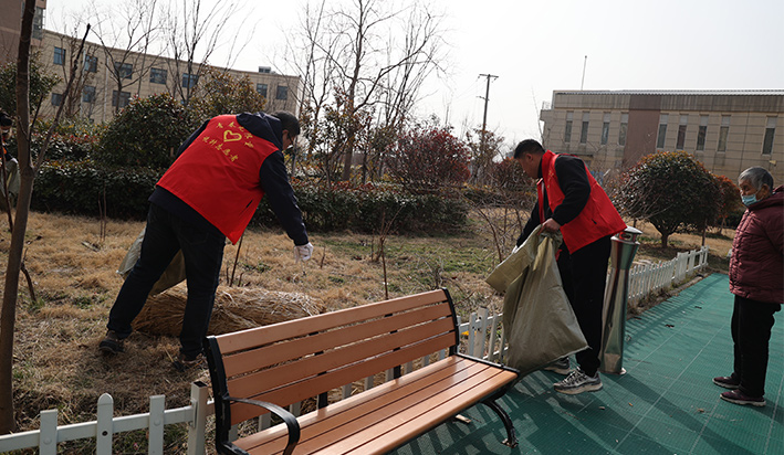 青年志愿者來到張圩小區(qū)開展義務(wù)勞動,活動中,青年們積極發(fā)揮奉獻精神,不怕臟、不怕累,個個奮力爭先, 分工有序,兩人一組對路面和綠化帶內(nèi)的垃圾進行撿拾,許多垃圾藏在綠籬內(nèi)也逃不過青年們的眼睛,大家認(rèn)真把長期無人清理、死角等垃圾雜物清理運走。經(jīng)過二個多小時的持續(xù)奮戰(zhàn),小區(qū)煥然一新。