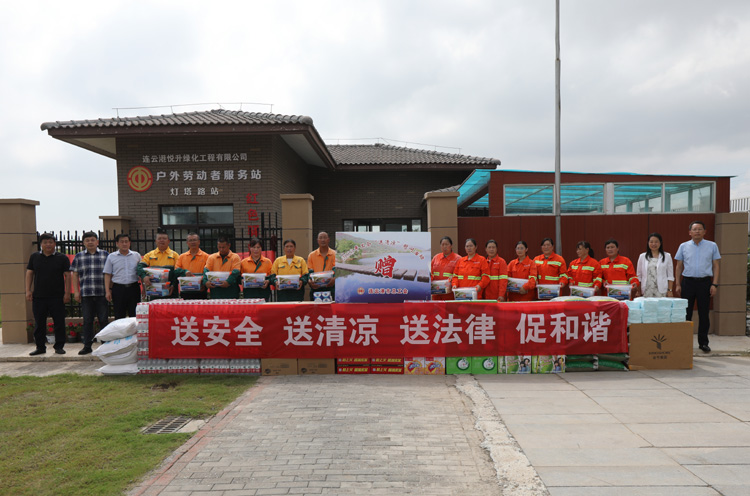 ????? 8月4日上午,市總工會副主席王悅到連云港綠化工程公司基層班組開展“送安全、送清涼、送法律”活動,走訪慰問堅(jiān)守在高溫作業(yè)現(xiàn)場的市政養(yǎng)護(hù)職工,在送去防暑藥品、涼茶、礦泉水、綠豆、白糖、毛巾等防暑降溫物品的同時,為他們送去絲絲涼意和誠摯的關(guān)懷。