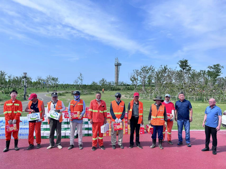 在現(xiàn)場(chǎng),為他們送去礦泉水、八寶粥、冰紅茶、牛奶等防暑降溫物品和生活用品。莊董事長(zhǎng)與員工們親切交談,關(guān)心詢(xún)問(wèn)員工作和生活情況,并叮囑要合理調(diào)整工作時(shí)間,妥善做好員工高溫防暑降溫工作。接到領(lǐng)導(dǎo)遞到手上的慰問(wèn)品,聽(tīng)著領(lǐng)導(dǎo)的問(wèn)候和囑咐,員工們心懷感激,競(jìng)相表示要克服酷暑高溫,堅(jiān)守崗位,盡職盡責(zé),以飽滿的工作熱情為企業(yè)發(fā)展貢獻(xiàn)力量。(孫祥艷)