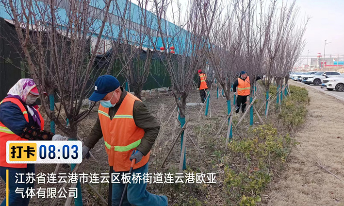 實時拆除防寒設(shè)施。隨著氣溫的逐漸升高,為使苗木更好、更快的返青,前期瑞南二個綠化班組緊鑼密鼓,積極準備,搶抓時機,3月中旬對云港路、金港路、228等道路兩側(cè)夾竹桃等綠植防寒草簾進行拆除工作,并對去冬枯枝干葉安排修剪。