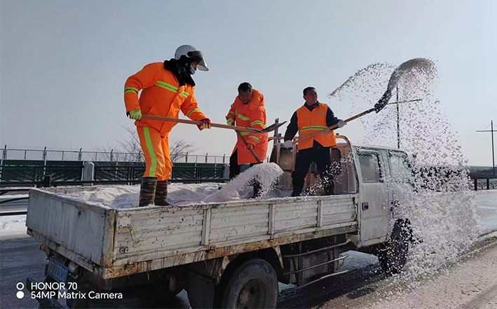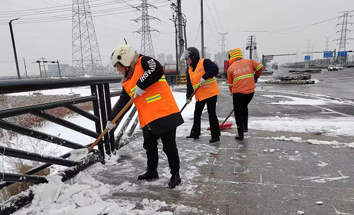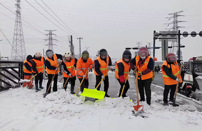 在白雪皚皚的雪地里,身穿橘黃工作服的保潔工人就是最美的點(diǎn)綴,他們頂著風(fēng)雪吹打臉頰,兩人一組、三人一對(duì),配合默契,揮動(dòng)手中鐵銑,用力拋灑融雪鹽斤80多噸,10余車。道路橋粱兩側(cè),人行輔道邊上,公司上下齊心協(xié)力,9名班長(zhǎng)在公司統(tǒng)一調(diào)配下,帶領(lǐng)班組人員,人工清除大小橋梁兩側(cè)積雪30多座,人行輔道長(zhǎng)達(dá)3000多米長(zhǎng),站臺(tái)、叉路口積雪100多處,為保障恢復(fù)雪后新城環(huán)境整潔而努力工作。大型清掃設(shè)備駕駛員全員齊上陣,安全行車裝運(yùn)融雪鹽斤里程達(dá)200多公里,工作時(shí)長(zhǎng)10個(gè)多小時(shí),安全操作鋤雪機(jī)械清理張圩互通引橋,埒子口大橋等路段長(zhǎng)達(dá)5000多米長(zhǎng),有力彰顯機(jī)械破冰、除雪強(qiáng)大功能。(楊波)